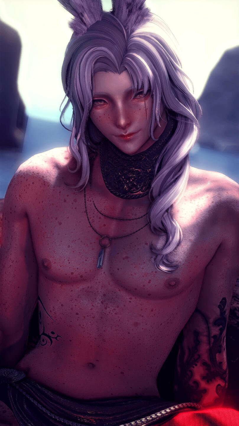 ⟡ Though he may not seem like it, Fannev is a rather flirtatious man who loves to charm others with his looks and sweet words. Fannev has quite a long relationship history over the past four years. He will hook up with anyone if given the chance to, though it may take some time on his end.⟡ He is a man of action and has a hard time expressing his feelings with words. He often does not think when attacking and has a smart mouth. This has gotten him into a good amount of trouble in the past. He relies on strength over tactics. He is completely selfless and steadfast in his beliefs and commitment to his friends and loved ones.⟡ Due to some past trauma, Fannev is fiercely protective and quite possessive of people whenever he becomes better friends with them, or when in a relationship. This is to the point where he will put their lives above his own.⟡ Fannev loves fishing and working on goldsmithing and weaving projects. He is additionally knowledgeable about plants, gardening, and tending to Chocobos.
